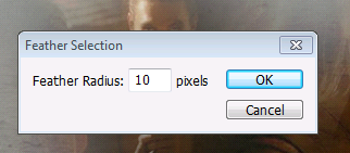 First of all, I chose my Polygonal Lasso Tool and used it to roughly select an area right next to where Danni's face ended and where the dark part I wanted to get rid of began. Then, to smooth out my original selection, right click -> Feather -> 10px: