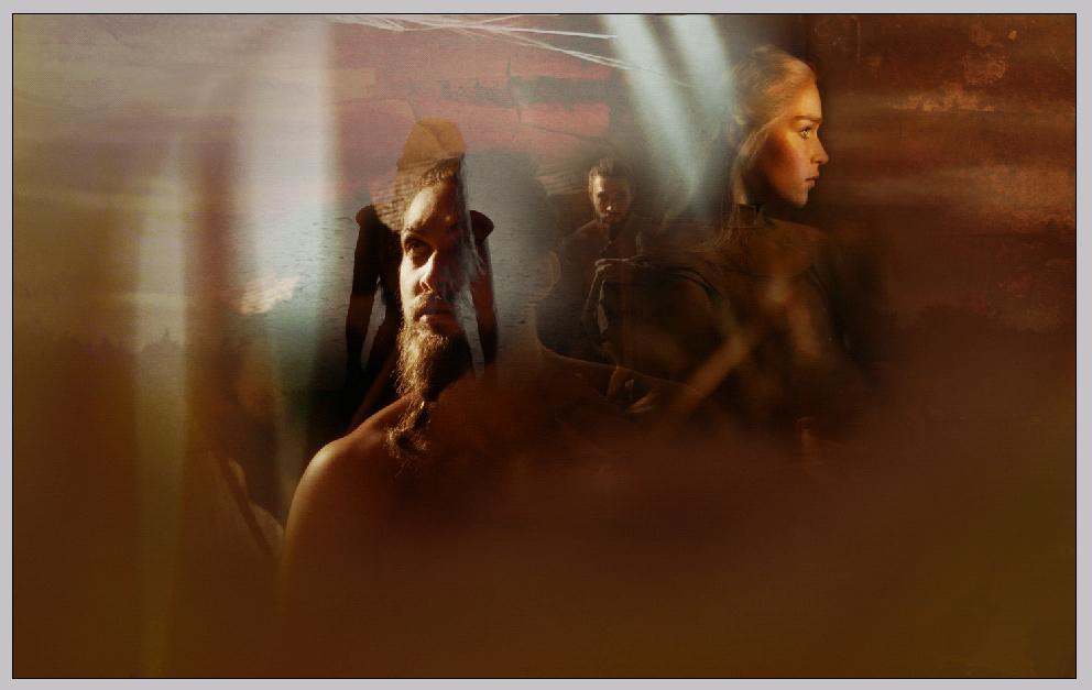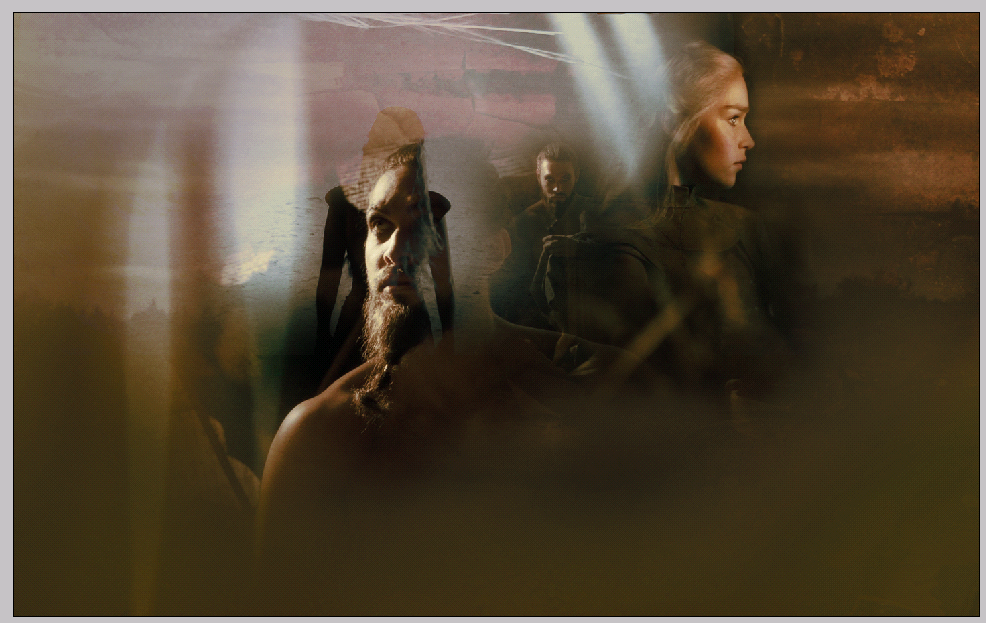 Then I noticed that despite my erasing, there was still a bit of the original dark background left on the top screencap (the one showing Daenerys looking to the right) and it felt like it was a bit too violent-looking there, so I wanted to soften it up a little and create subtler transition between the screencap and the background. For this purpose I very often use the