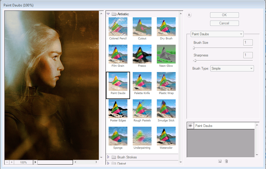 Filter -> Artistic -> Paint Daubs and set the Opacity down to 90%, to bring back a little bit of the sharpness and also create a sort of a painted effect (as explained in a tutorial by