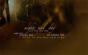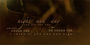 As a last step I added my text, in this case lyrics from 1934 song Night and Day which I thought fitted lovely for the relationship between the two main characters. I added the words, first in different fonts and colour a couple of shades lighter than my original background: