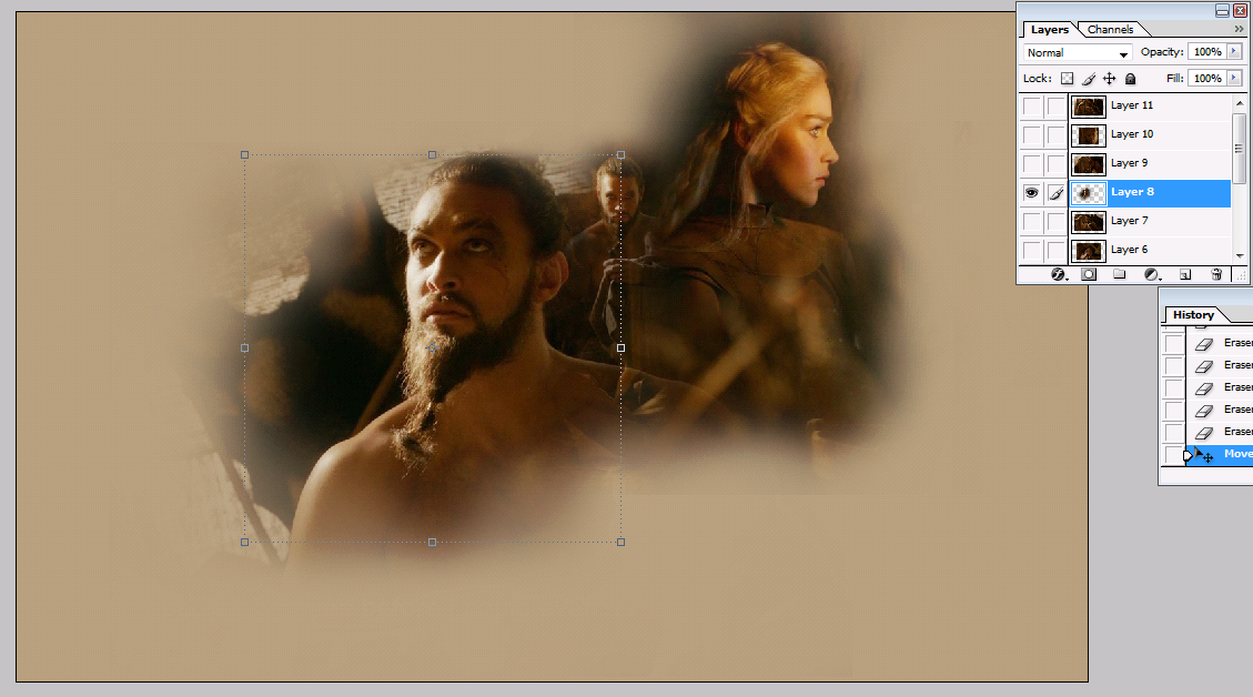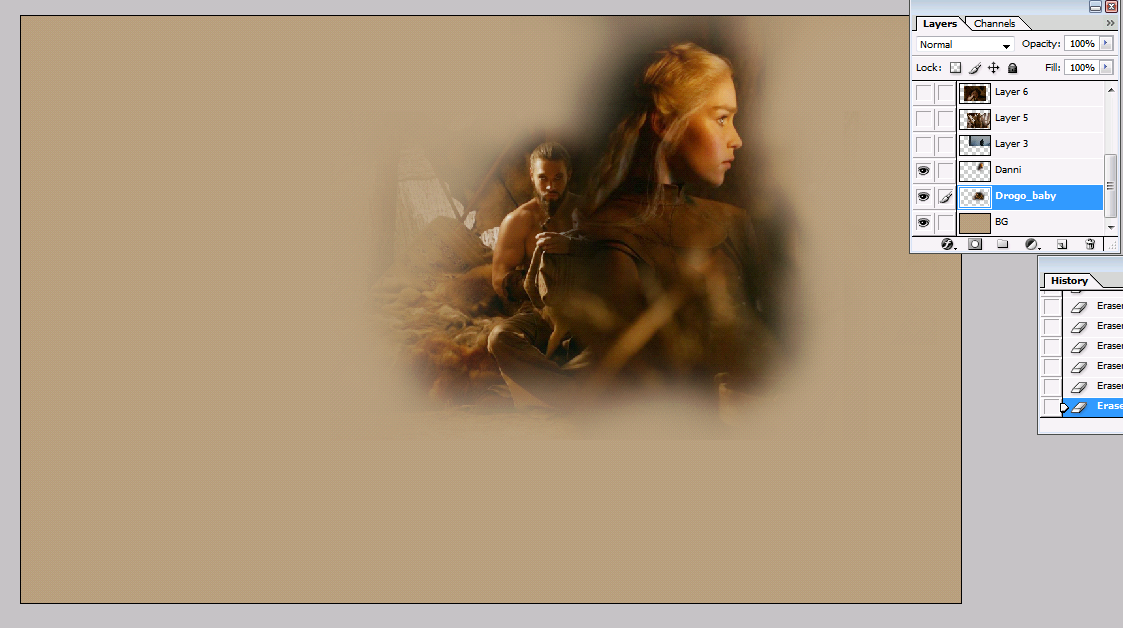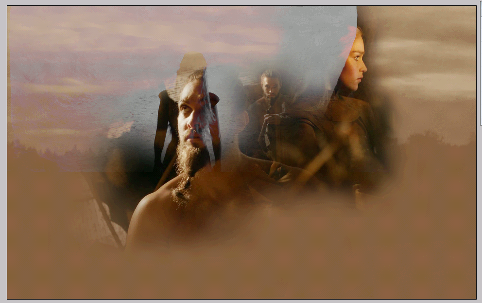 Before I continued I also noticed that the screencap with Daenerys walking away, that I placed over Drogo's face, is creating rather a sharp edge over Danni's face on the right: